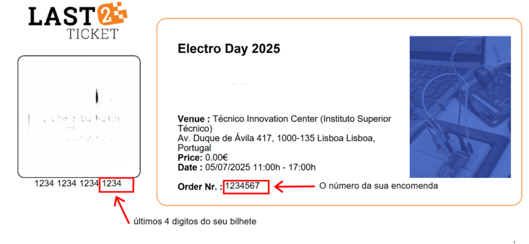 Onde encontrar o meu número de encomenda e últimos 4 digitos do bilhete?